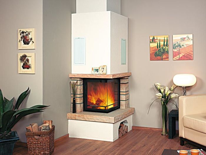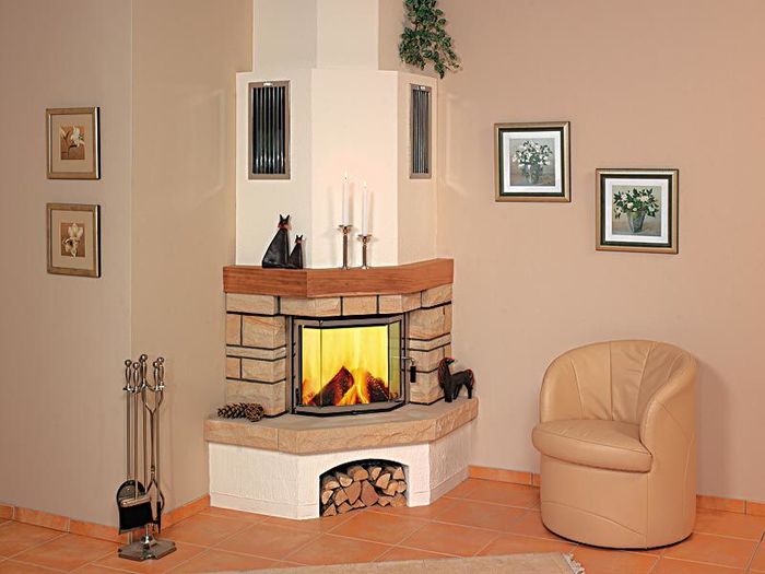 Der Natur- oder Sandsteinkamin ist mit einem natürlich gewachsenen Stein in verschiedenen Farben lieferbar. Außerdem gibt es jede Variante mit Steinobersims oder einem massivem Holzbalken als Abschluss.